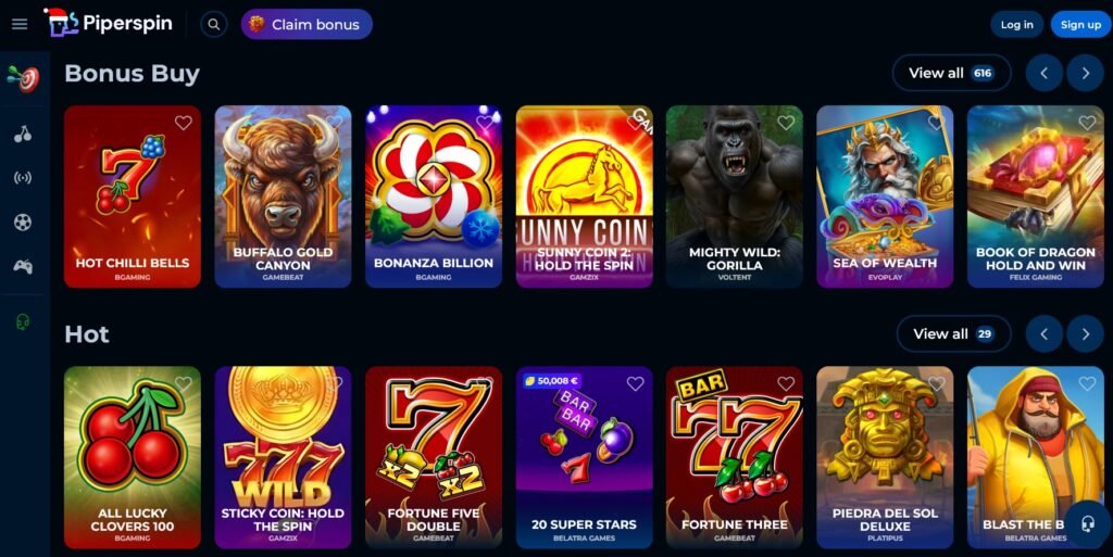 El catálogo de juegos en Piperspin tragamonedas se destaca por su diversidad y calidad. La plataforma colabora con reconocidos proveedores internacionales como Playson, Red Tiger, Evoplay y Winfinity, lo que garantiza que los jugadores tengan acceso a títulos modernos y altamente atractivos en términos gráficos y de jugabilidad.